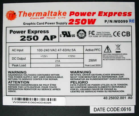 Specifications regarding voltages and power output, can be found on the label, which is located on the bottom of the PSU...