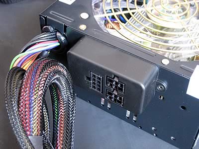 This is the famous P.S.T. that Thermaltake is so proud of. All peripherals, except the VGA cards, are powered by this unit. You can see small leds on the front panel of the P.S.T., indicating the safe operation of different voltage rails.