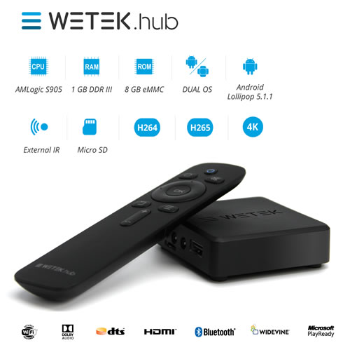The new WeTek Hub Android media player is a ultra compact IPTV/OTT device that encapsulates great processing power. TheAndroid TV box can be used to watch OTT services such as Netflix, Hulu, HBO Now and much more. It's also possible to connect a hard drive, keyboards and even Bluetooth speakers.