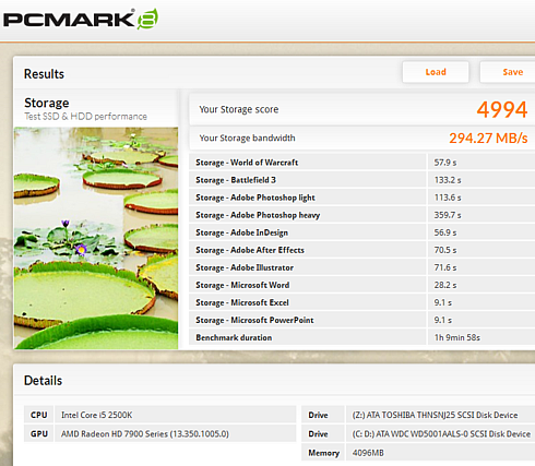 The Toshiba drive scored 5582 points at the storage benchmark, which is the highest we have seen from an SSD so far.
