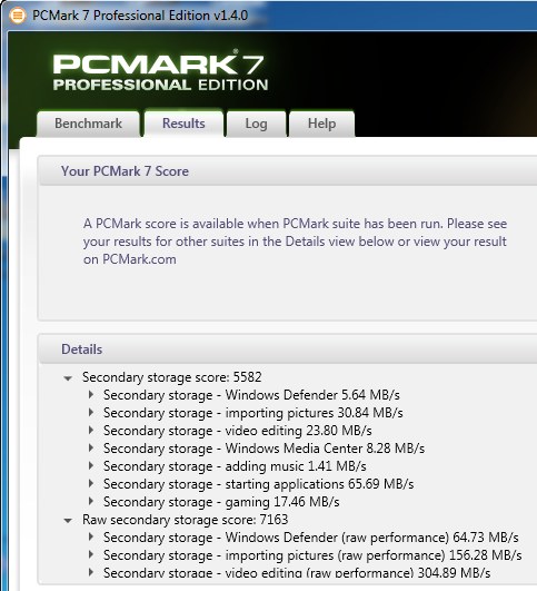 Below you see the results of Futuremark's PCMark 7 Professional edition. The software includes 7 PC tests for Windows 7, combining more than 25 individual workloads.
