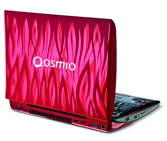 The Qosmio X305-Q708 features Toshiba's trademark "fiery" Fusion finish with Rogue design.