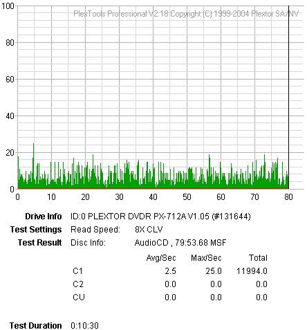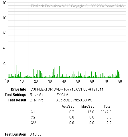 With the aid of PleXTools v2.16 and Plextor 721A, it's time to start measuring the C1 / C2 error rates on the discs we burned with the Nero burning software, at the maximum supported speed of 48X.
