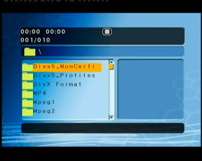 After a disc is loaded and recognized, the Waitec Vision HTX displays the disc's folders as shown below. The player doesn't initially scan the disc for the supported formats and will display all folder names.