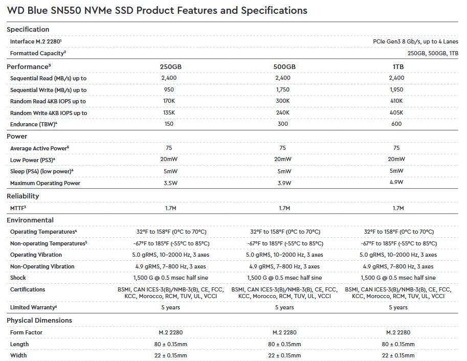 The WD Blue SN550 NVMe SSD comes with a 5-year limited warranty and it is currently available for sale on the Western Digital Store. Capacities range from 250GB to 1TB.