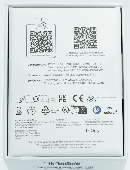 The retail package of the Scan Watch 2 is simply designed and has overall small dimensions (like most watch boxes).