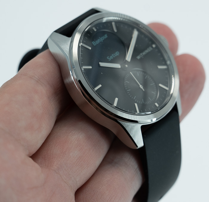 The main dial is easy to read and includes the Withings logo at the 3:00 pm mark. The second bottom dial helps you track your step goal throughout the day. The pointer displays the percentage of steps you have done and you have left to reach your daily goal. For example, if your hand points at 50, you are halfway to your goal. If it points at 100, congrats, you've reached it - unless it is 6 am, which probably means that you haven't walked much yet.