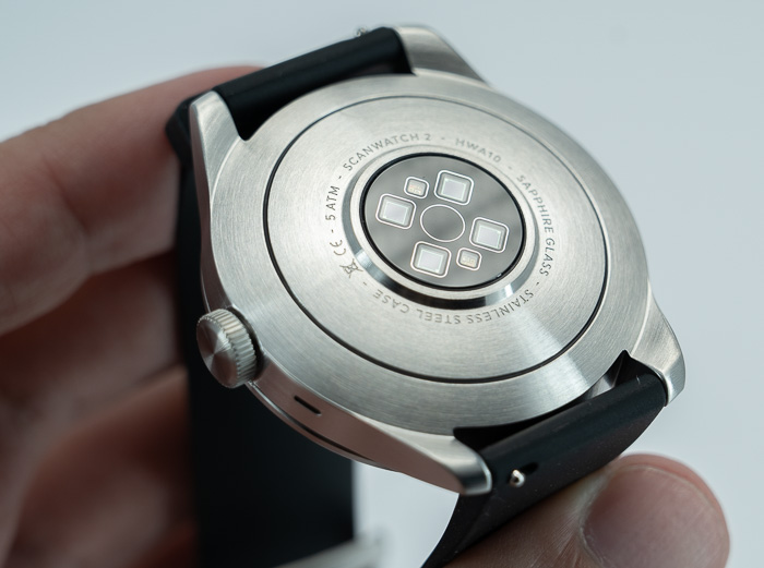 Looking at the Scan Watch 2, we will find a traditionally designed watch, producing elegant results, with analog dials and a small OLED screen with 0.63" diameter and 282ppi pixel resolution-16bit grayscale, at the top and with an additional analog dial at the bottom area. The main body is made out of stainless steel 316L graded, while the watch glass is Saphire which should hold very well against scratches.