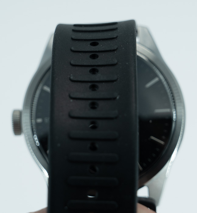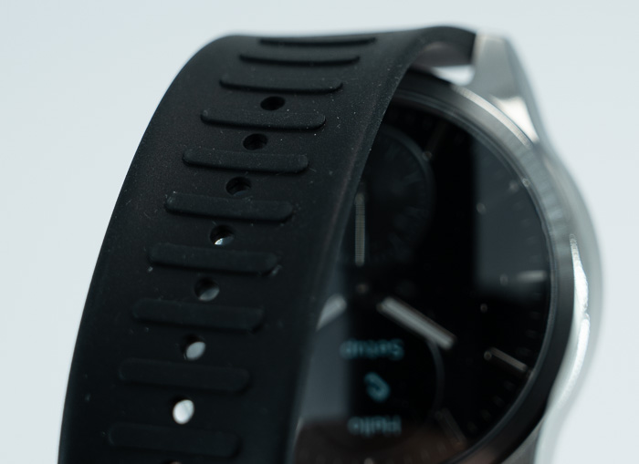 The default silicon wristband has a nice smooth feel and there are many holes to secure the watch.