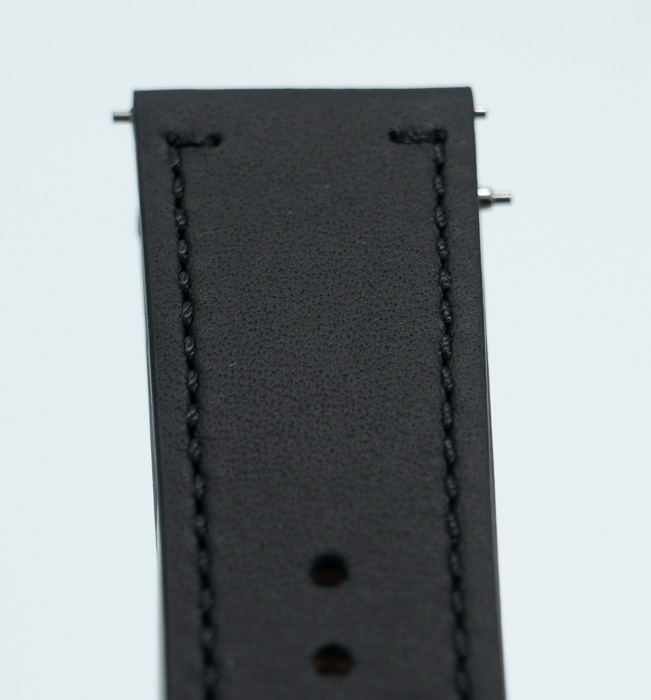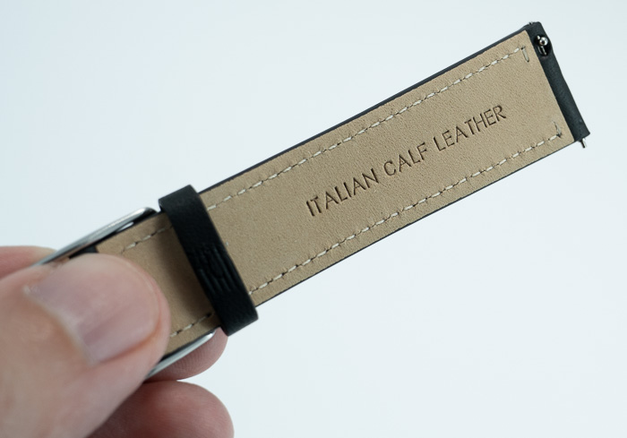 For our tests, we received the black wristband called "Leather Wristband 20mm Black, Black Stitch & Silver", which costs €49.95 and is made of fine Italian leather, known for its comfort in everyday wear and ability to hold up over time. The packaging includes stainless steel buckle, and stainless steel spring bars for quick release and fits cuffs from 160 mm to 226 mm (6.3" to 8.9") in circumference.