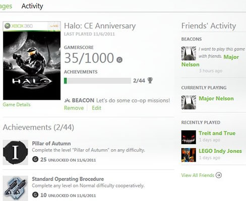 Click a title and you'll be taken to a page that shows your achievements and which of your friends have also set Beacons for that game. Below the Beacons you can see anyone who's online playing right now, and others who?ve recently played it. You'll also be alerted to friends playing titles that you've set a Beacon for on your Xbox 360, but that won't happen until after the next System Update goes live. However, Windows Phone users will be able to see Beacons under the Xbox LIVE Requests section right away.