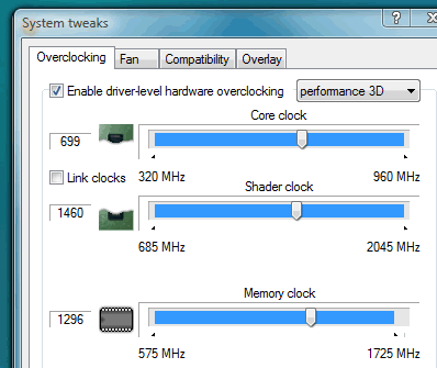 The overclocking procedure through the Riva Tuner is simple, although you will possibly need to manually increase the rotation of the GPU fan to handle the heat.