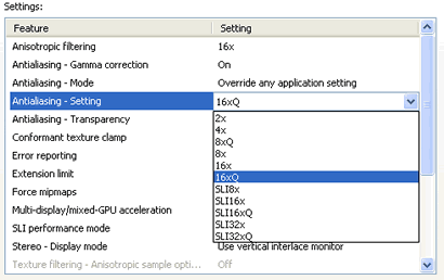 In the 8800 series, the 3D control panel has some minor changes. User can now set the AA mode,